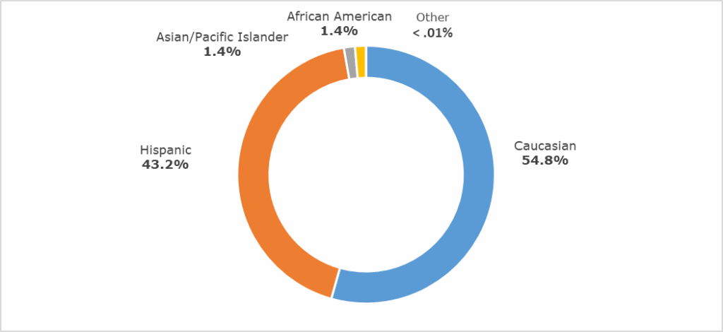The data below is an indirect estimation of the racial composition of our New Mexico customers. The data were derived from a methodology that combines census geocoding and surname recognition.