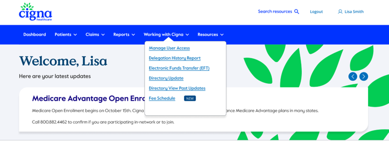 This convenient functionality can be accessed by logging into the Cigna for Healthcare Professionals website at CignaforHCP.com, navigating to the “Working with Cigna” section, and selecting “Fee Schedule.”