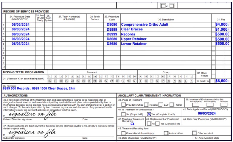 Required Information for Orthodontia Claims